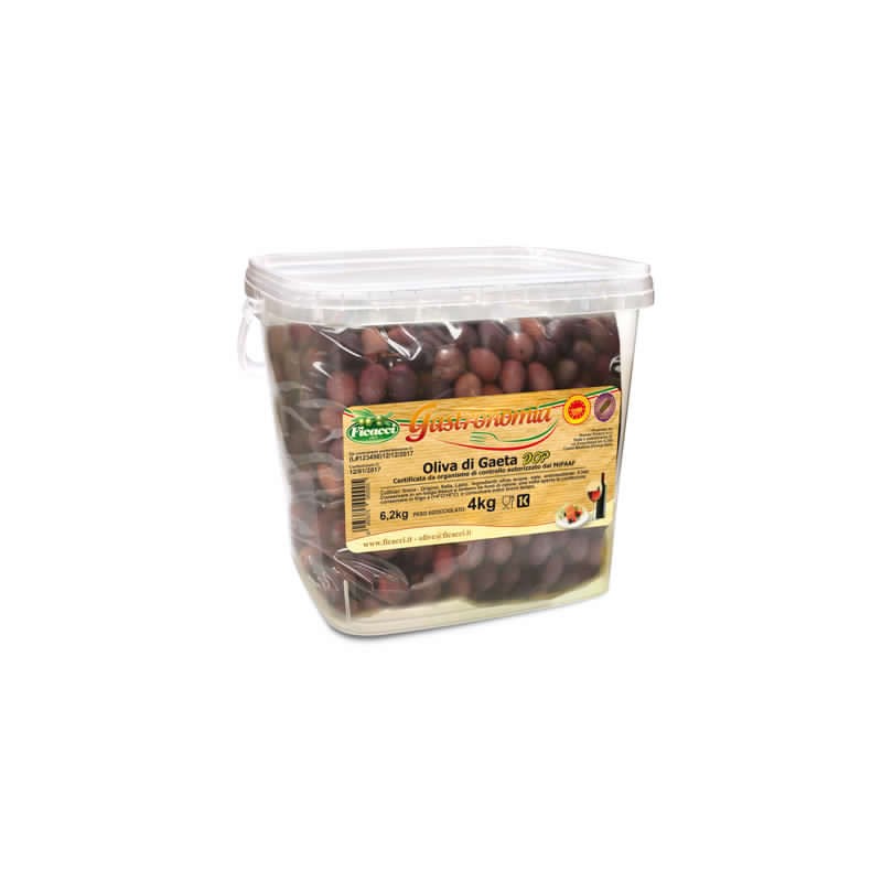 Olives noires de Gaeta DOP... La perle noire des olives italiennes. L'olive la plus prestigieuse en cuisine, la touche de classe. Le plus connu et apprécié des consommateurs italiens.